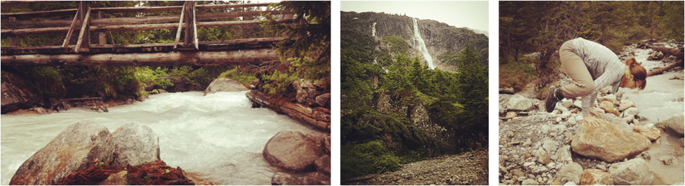 Heute nun, am zweiten Tag einer Wanderung im Lauterbrunnental, machen wir Rast an einem sympathischen Ort. Am Fluss, welcher kurz zuvor als tobender Wasserfall ins Tal gestürzt ist, setzen wir uns auf die Steine und lauschen dem Wasser. Noch immer hat es viel Kraft und die „Energie ist laut“, wir unterhalten uns kaum. Proviant verzehrend schaue ich mich fasziniert um – die Kraft des Wassers, die Majestät der Berge. Ich kann aber gar nicht lange sitzen und trabe hin und her, fotografiere dies und das und bin…naja, voller Energie…Okay, die Tageswanderung war (meteorologisch erzwungen) nicht streng, daher war wohl auch noch Energie aus dem üppigen Essen übrig ;) Jedenfalls bin ich wach, tigere rum und freue mich ab der Szenerie…und, dass es nicht regnet!